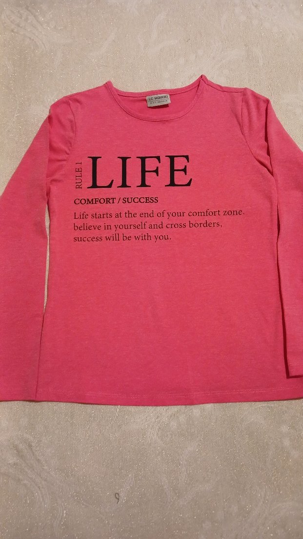 Kız çocukları için pamuklu, uzun kollu, pembe tişört. Rahat kesimli ve bisiklet yaka. Önünde motivasyonel baskı bulunur.