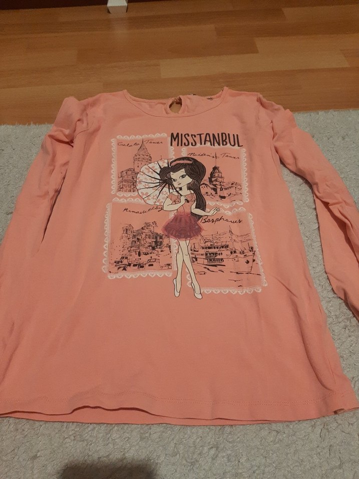 Pembe uzun kollu kız çocuk tişörtü, bol kesim ve yuvarlak yaka. 'MISSTANBUL' baskılı tasarımıyla sokak stili sunar.