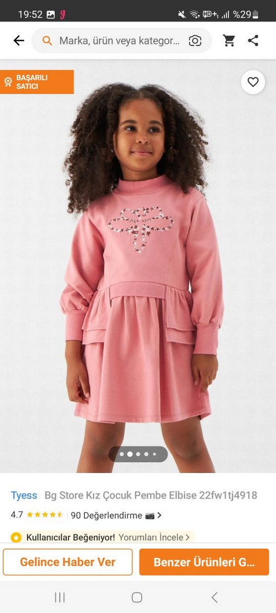 Kız Çocuk Pembe Uzun Kollu Elbise