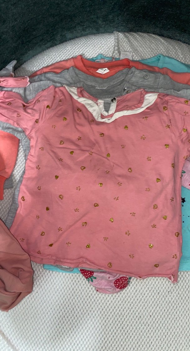 Yumuşak sentetik kumaştan, düğmeli detaylı, yuvarlak yakalı, bol kesim pembe uzun kollu kız çocuk gömleği.