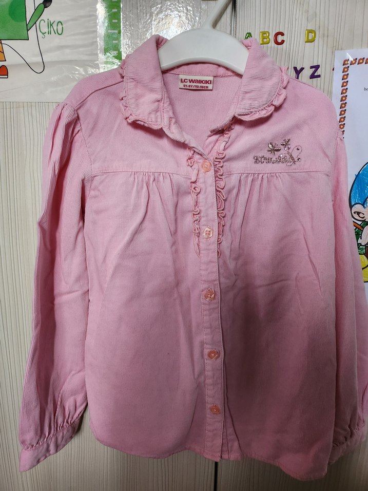 Kız Çocuk Pembe Uzun Kollu İşlemeli Gömlek