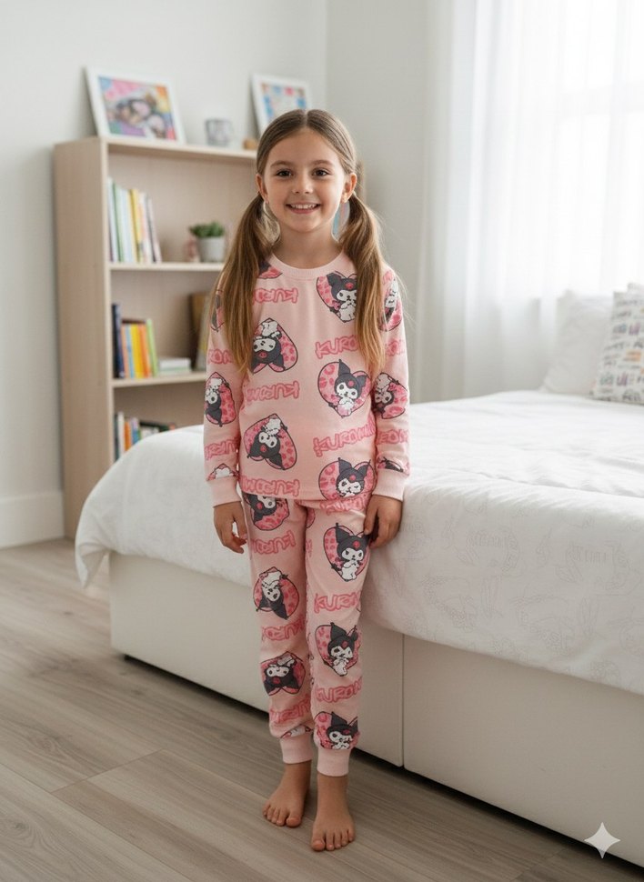 Kız Çocuk Pembe Uzun Kollu Pijama Takımı