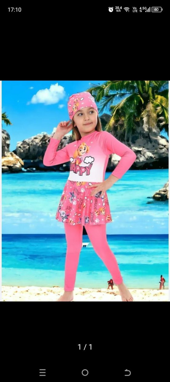 Renkli pembe, uzun kollu, bağlama desenli ve pop kültür baskılı mayo. Tayt ve uyumlu bone ile tam kapama sağlar. ️