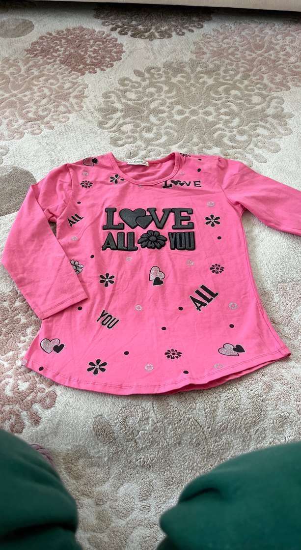 Kız Çocuk Pembe Uzun Kollu Pul İşlemeli Tişört