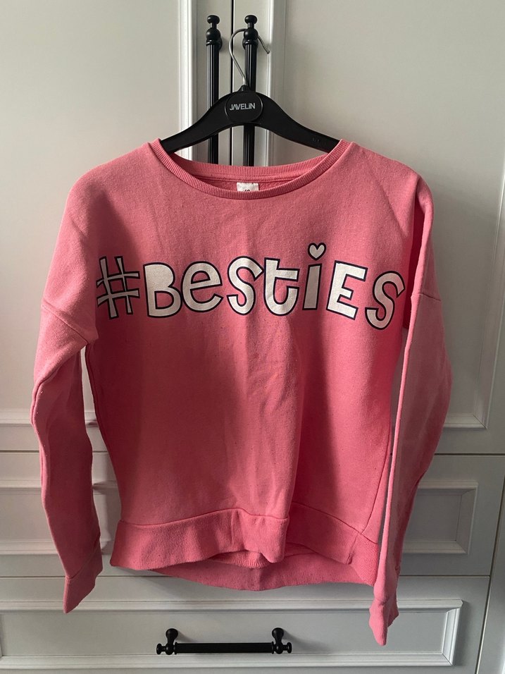 Pastel pembe renkli, bol kesim kız çocuk sweatshirtü. Uzun kollu, yuvarlak yakalı, yumuşak fleece kumaştan ve örme detaylıdır. Üzerinde '#BeStiEs' baskısı vardır. Defosu görselde belli