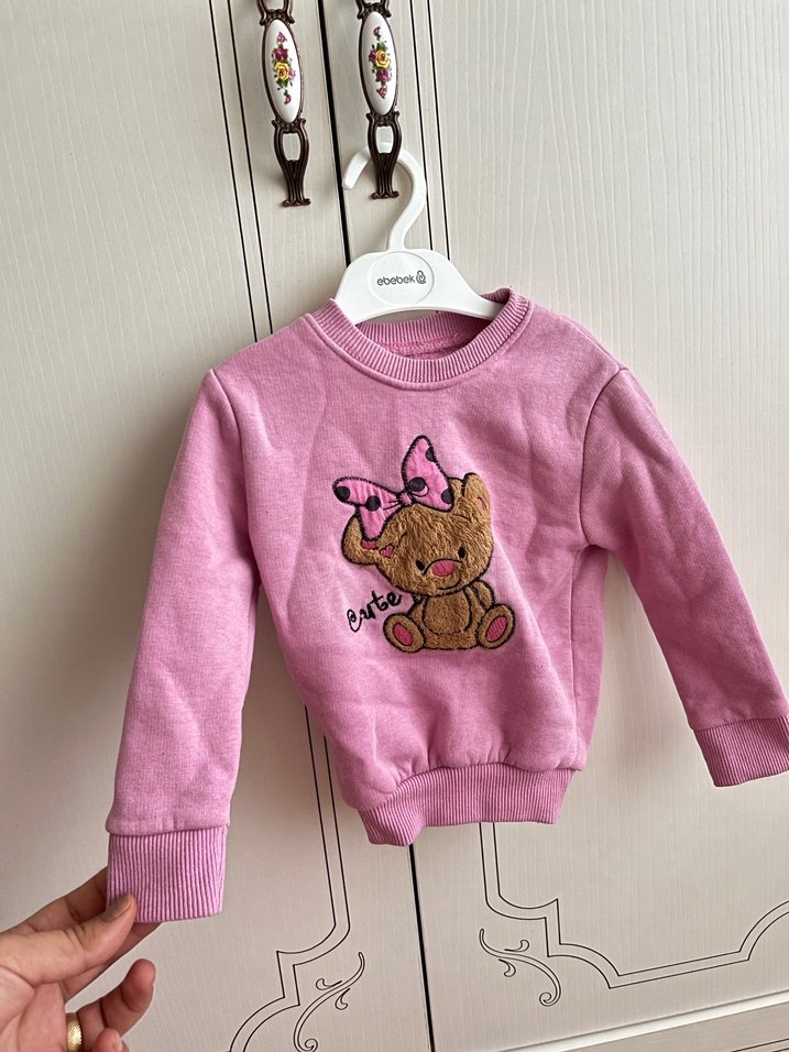 Pembe renkli kız çocuk sweatshirtü, uzun kollu ve yuvarlak yaka. Yumuşak kumaştan, bol kesim ve önünde ayıcık baskısı bulunur. Rahat ve şık sokak stili için uygun.