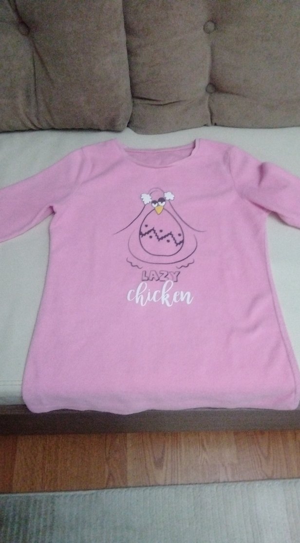 Pembe renkli, uzun kollu ve yuvarlak yaka sweatshirt. Yumuşak, sıcak kumaştan üretilmiş, gevşek kesim ve dantel detaylı baskılı tasarım.