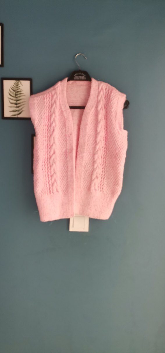Fitted kesim, pastel pembe renk ve örgü dokusuyla kız çocuk süveter. Kolsuz ve V yaka tasarıma sahip, sade ve desensiz bir modeldir.