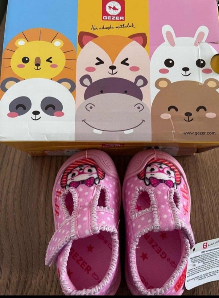 Renkli desenli, Velcro bantlı pembe kız çocuk panduf Dayanıklı kauçuk tabanlı. Marka: GEZER.