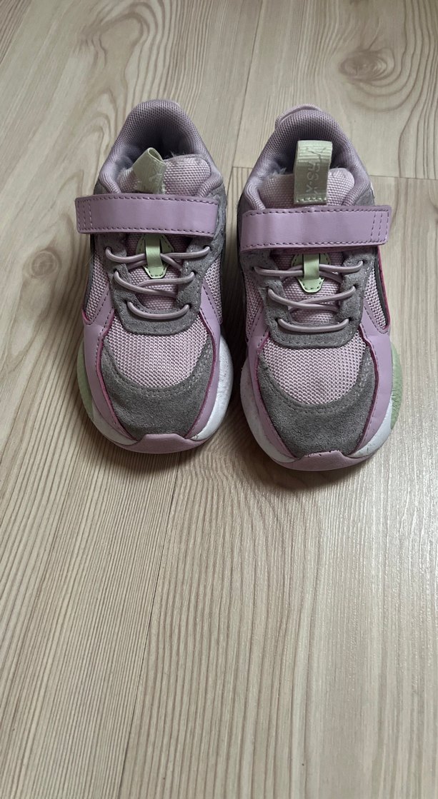 Velcro bantlı, bağcıklı ve bağlama deseniyle pastel pembe kız çocuk spor ayakkabısı. Yumuşak file ve kauçuk tabanlı sokak stili için uygun.
