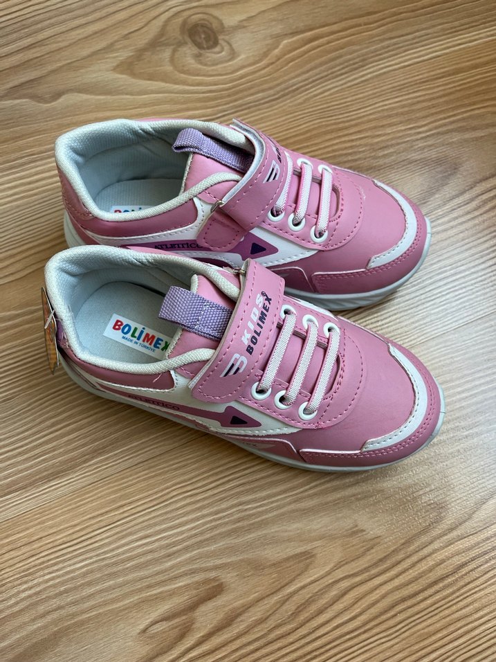 Pembe renkli, baskılı detaylara sahip kız çocuk spor ayakkabısı. Kauçuk malzemeden üretilmiş, Velcro kapamalı ve rahat sokak stili için uygun. Markası temsilidr