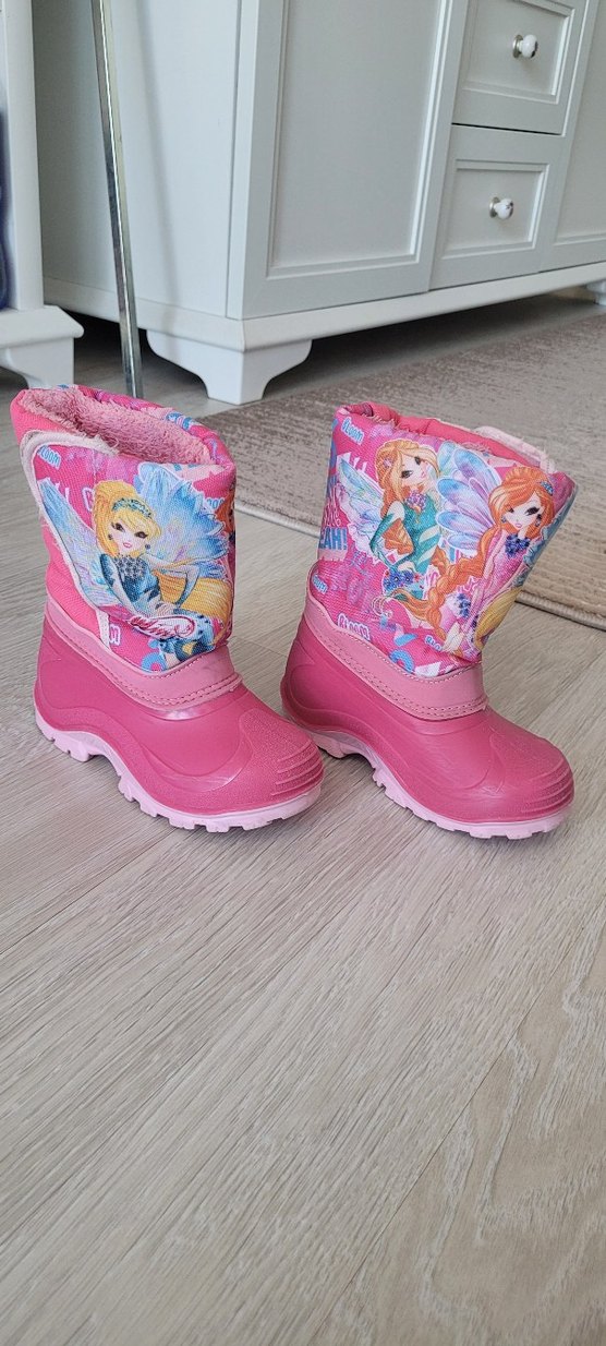 İçi yumuşak tüylü. Pembe renkli kız çocuk botları, Winx karakterli renkli baskılar ve kolay kullanımlı cırt cırtlı kapanışa sahiptir. Plastik malzemeden üretilmiştir.