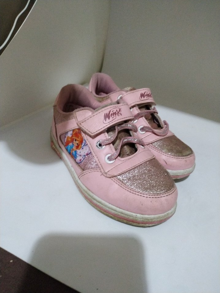 Pembe renkli, Winx baskılı kız çocuk spor ayakkabısı. Cırt cırtlı kapama ve kauçuk tabanlıdır. Trend sokak stili için uygundur. dinlerin bazıları döküldü kullanıma engel değil