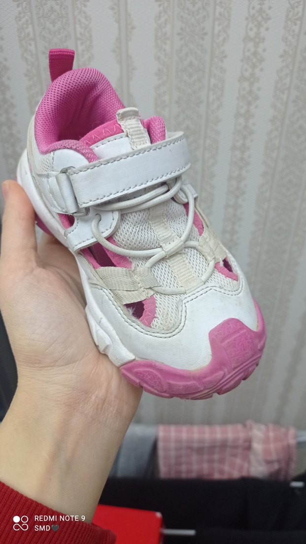 Renkli pembe bağcıklı ve cırt cırtlı kız çocuk spor ayakkabısı, kauçuuk tabanlı, bağcıklı ve bağcıklı rahat kullanım sağlar. ürün temizdir. sadece tozlu. deforme yoktur