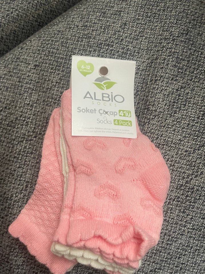 Yumuşak ve sıcak dokulu, pastel pembe yılan desenli kız çocuk çorabı. ALBiO markasına ait 4'lü paket.