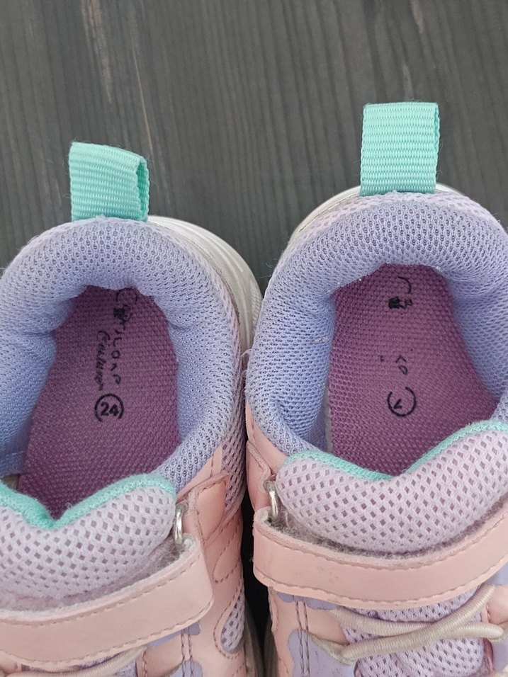 Pembe kız çocuk spor ayakkabısı, velcro bantlı ve rahat kauçuk tabanlıdır, günlük sokak stili için uygundur. sadece ön kısmı biraz defo olmuştur. fiyata yansitıldı. çok sağlam ve aşırı rahat bir ayakkabıdır.