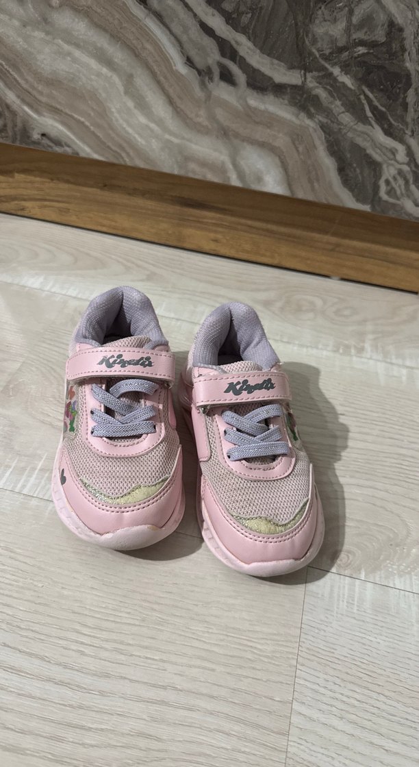 Pembe renkte, yılan desenli kız çocuk spor ayakkabısı. Kauçuk tabanlı ve kolay kullanım için cırt cırtlı bantlıdır. Pastel sokak stili tasarım.
