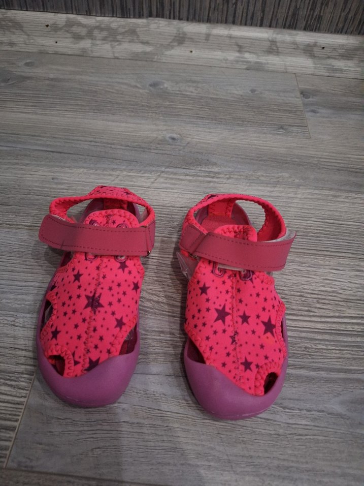 Rahat kauçuk malzemeden yapılmış, pembe renkli, yıldız desenli ve cırt cırtlı kız çocuk terliği. Ürün sayılı kullanıldı tertemiz