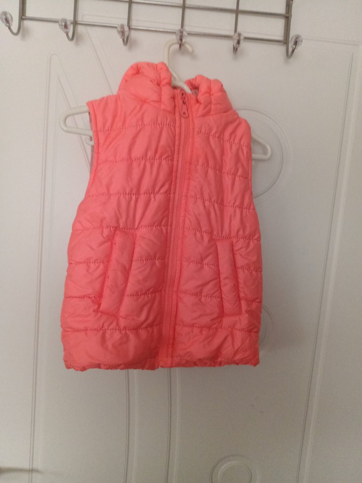 Kız çocukları için fermuarlı, yüksek yakalı, yumuşak ve sıcak kumaştan yapılmış, pastel pembe renkli, düz desensiz yelek. Sokak tarzına uygun, kolu yok. boyu 40 cm iki kol arası 34 cm