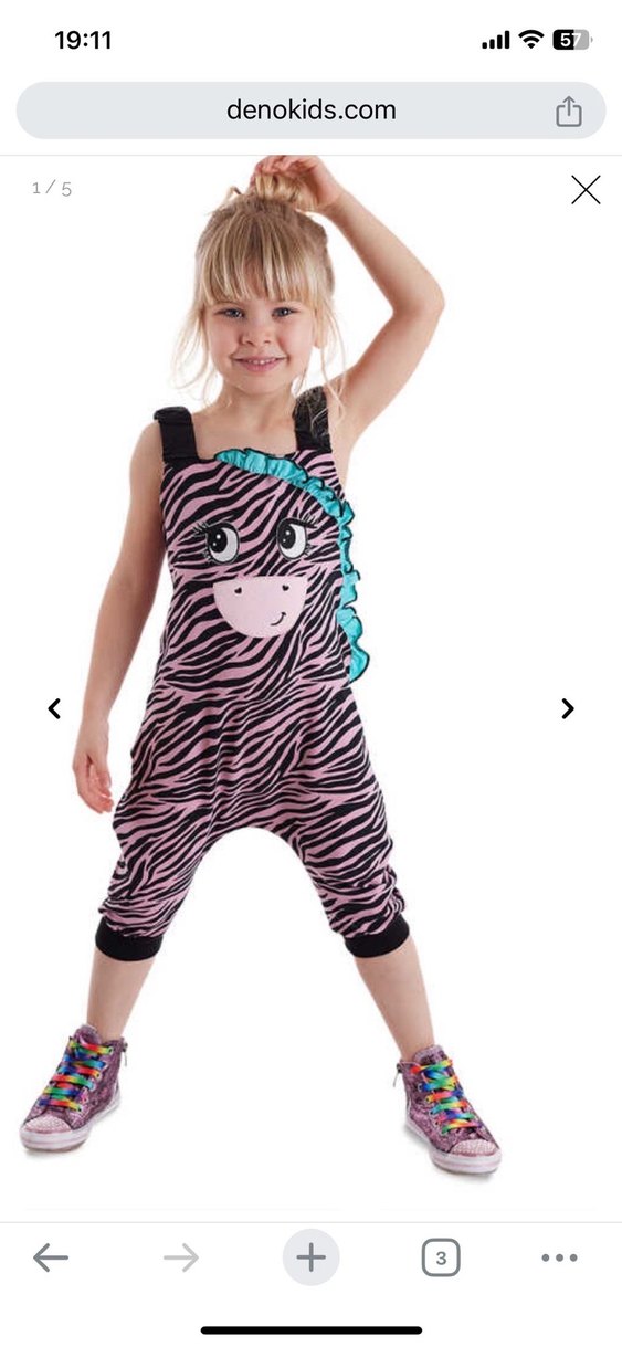 Kız çocukları için pembe zebra desenli, renkli ve fırfırlı, askılı rock punk tarzında tulum.
