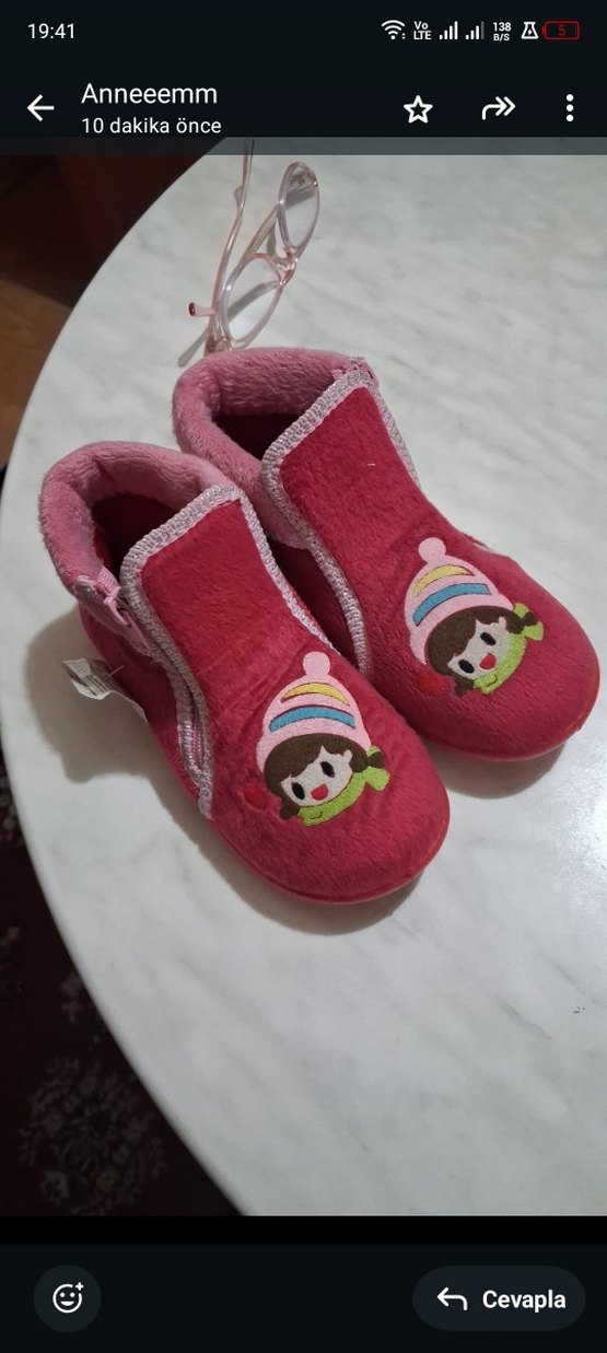 Yumuşak kürk benzeri pembe terlikler, renkli nakışlı desen ve cırt cırtlı kapama ile kız çocukları için uygun. Rahat sokak stili için ideal.