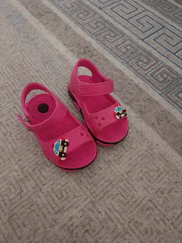 Kız çocukları için pembe renkte, tokalı bantlı, renkli baskılı kauçuk terlik, günlük sokak stiline uygun.cok Hafiftir ilk yürüme ayakkabısı gibi rahattır.