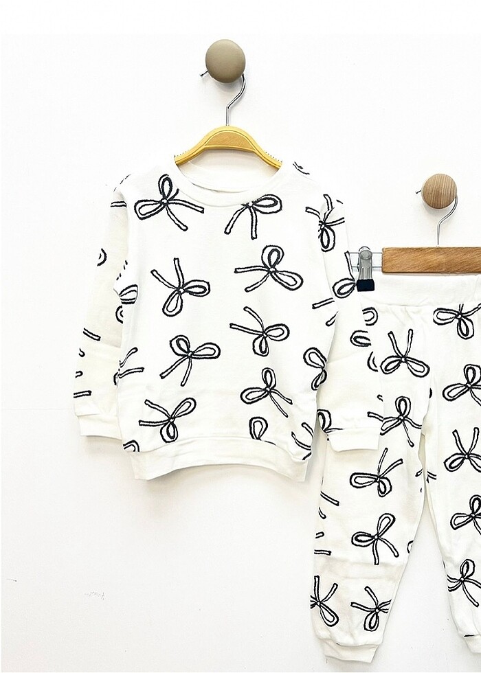 Kız çocuk pijama takımı Ekru kurdele desenli 2-3-4-5 yaş bedenleri mevcuttur