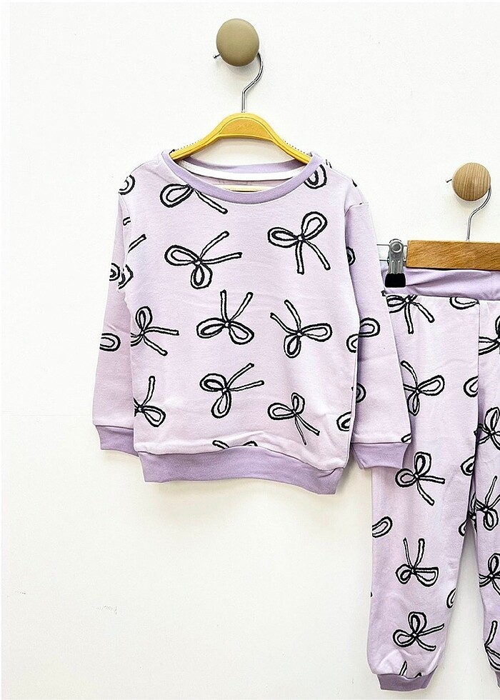 Kız çocuk pijama takımı kurdele desenli lila 2-3-4-5 yaş bedenleri mevcuttur