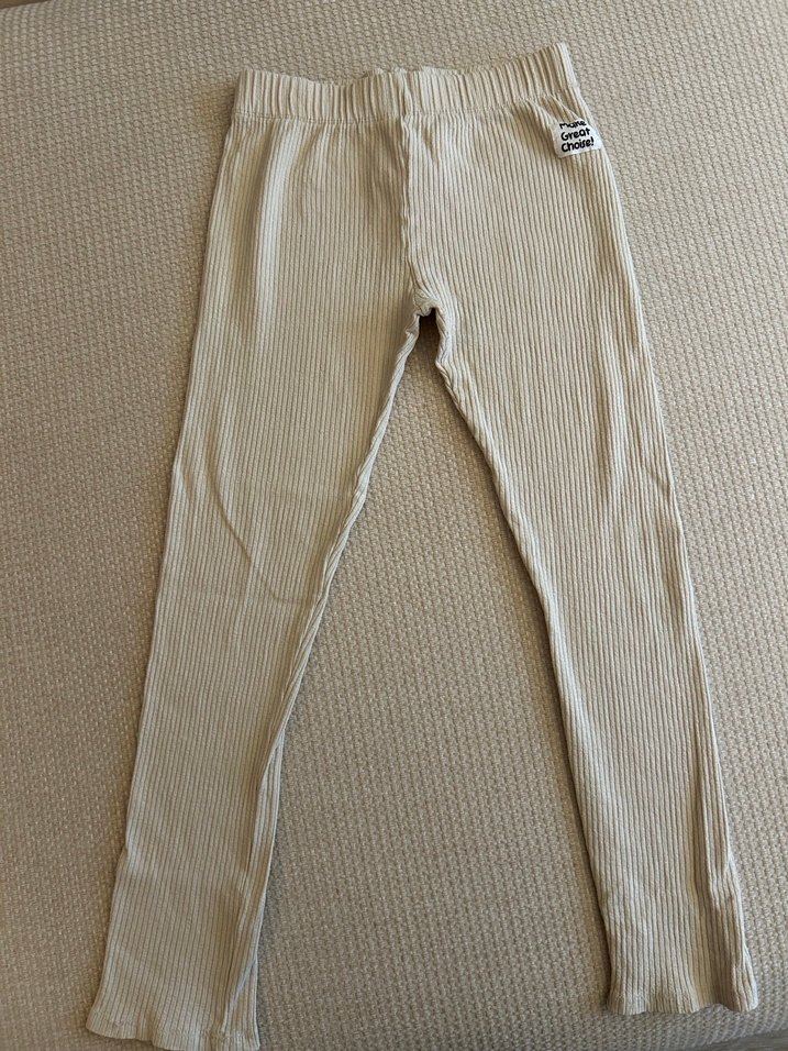 Kız çocukları için bej renkli, pileli ve ince keten kumaştan yapılmış, vücuda oturan rahat tayt. Günlük kullanım için uygundur.