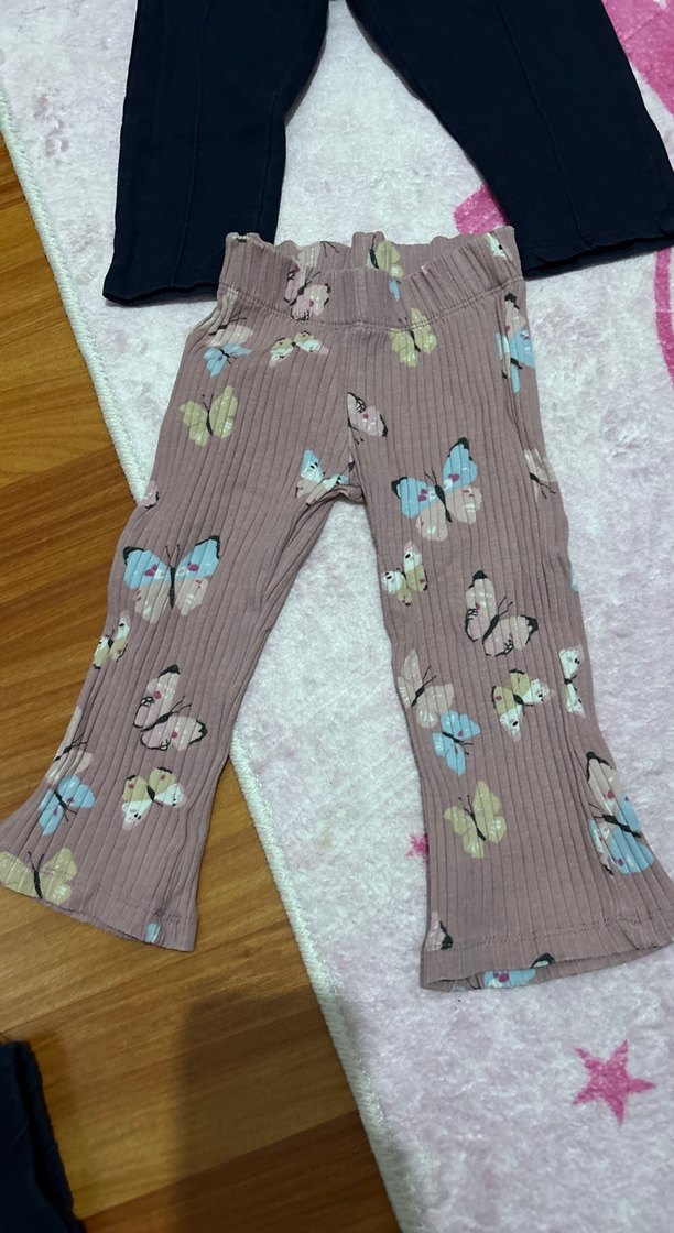 Kız çocukları için piliseli ve kelebek desenli, bol kesim triko taytlar. Rahat ve trend sokak stiliyle uyumlu.