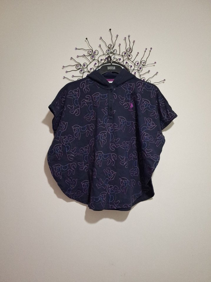 Kız çocukları için kısa kollu, kapişonlu, düğmeli ve bol kesim #unicorn #pony desenli pancho. Yumuşak ve iki iplik kumaştan, sokak tarzına uygun.