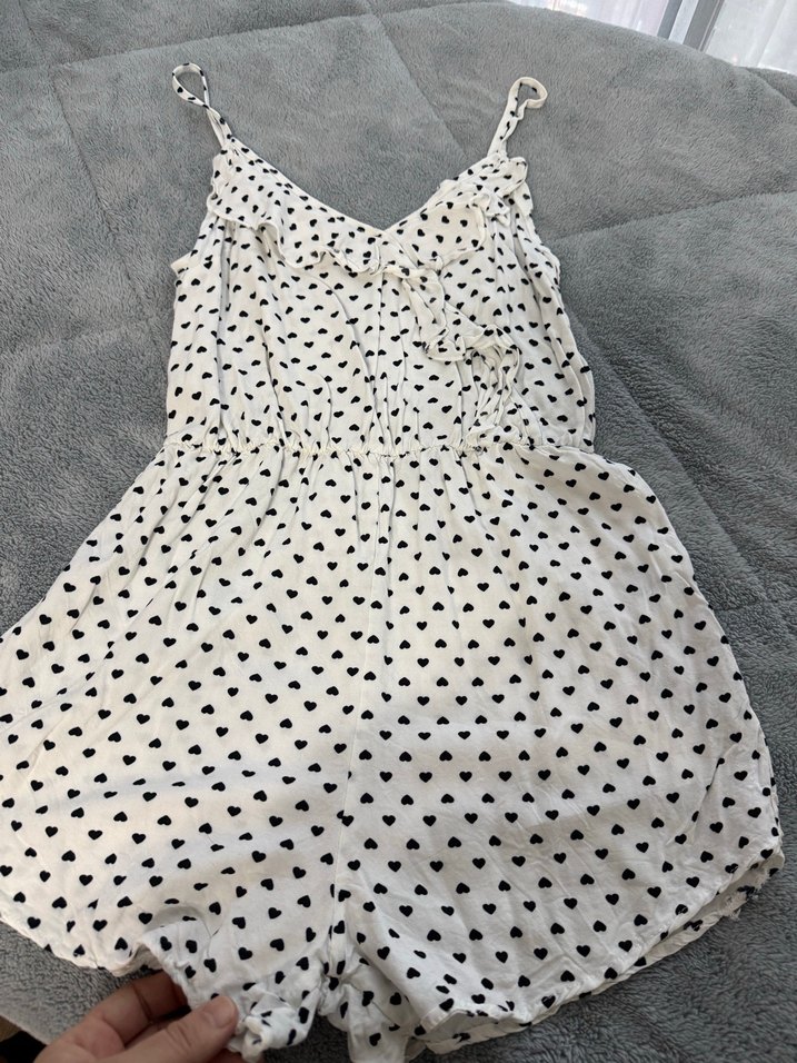 Pamuk kumaştan, kolsuz, V yaka, puantiye desenli ve fırfırlı detaylı birkaç kez giyidi sorunsuz