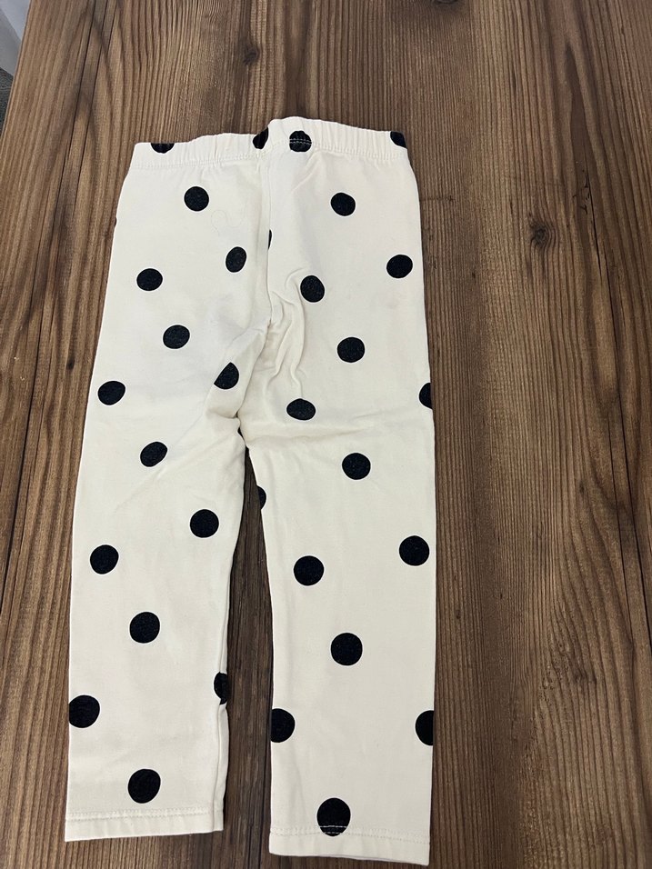Koyu renk puantiyeli, düğmeli beyaz pamuklu, dar kesim kız çocuk taytı. Ayak ucunda hafif leke var 2/3 yaş LCW