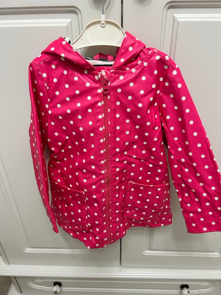 Kız çocukları için pembe, puantiyeli, fermuarlı ve yumuşak fleece kumaştan yapılmış, notched lapel yakalı, dar kesim yağmurluk. Trendy ve rahat tarz için uygundur. ️