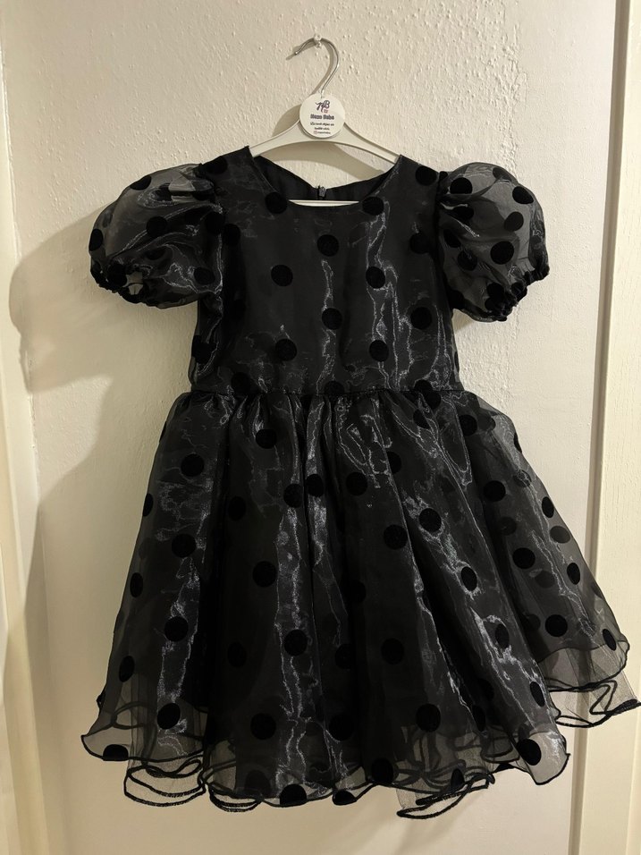 Kız Çocuk Puantiyeli Siyah abiye Elbise