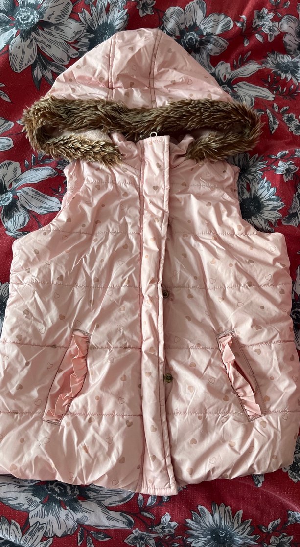 Kız Çocuk Pudra Kürklü Kapüşonlu Yelek