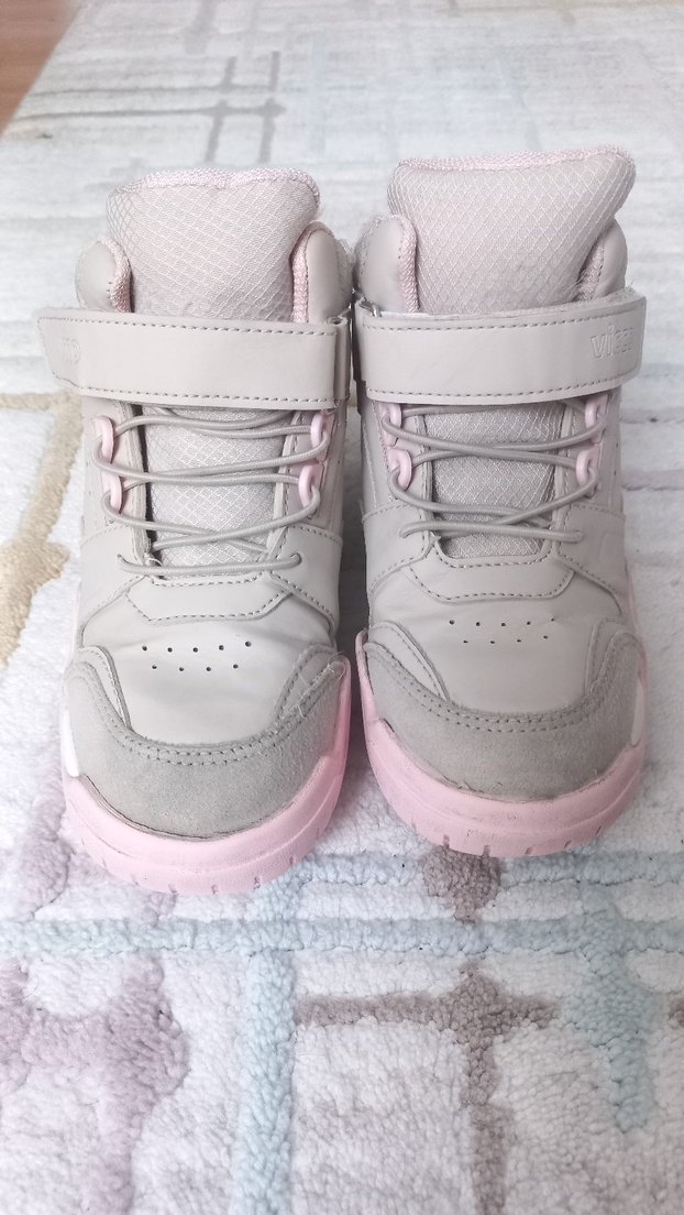 Kız çocukları için bej renkte, cırt cırtlı ve kaymaz tabanlı bot ayakkabı. su geçirmez özelliği yok ama yağmurda ve karda hiç su almadı. çok rahat bu sene aynısının 33 numarasını tekrar aldım