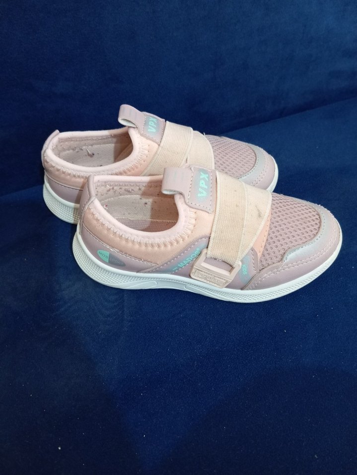 Pastel pembe renkte, cırt cırtlı kız çocuk spor ayakkabısı. Kauçuk tabanlı, rahat ve şık sokak stili için uygun.