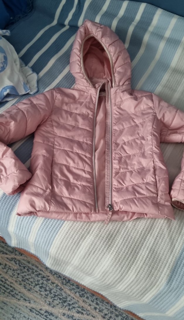 Kız çocuklar için fit kesim, fermuarlı ve kapüşonlu pudra pembe kış montu. Yumuşak sentetik kumaştan, uzun kollu ve notched yakalı, rahat sokak stili için uygundur.