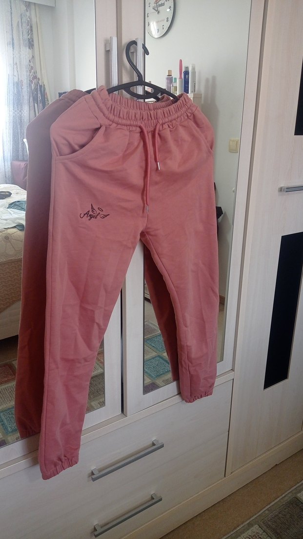 Pastel pembe renkte, rahat kesim yumuşak kumaştan eşofman.cepli ve bağcıklı lastik bel detayı bulunur. Günlük sokak tarzı için uygundur.