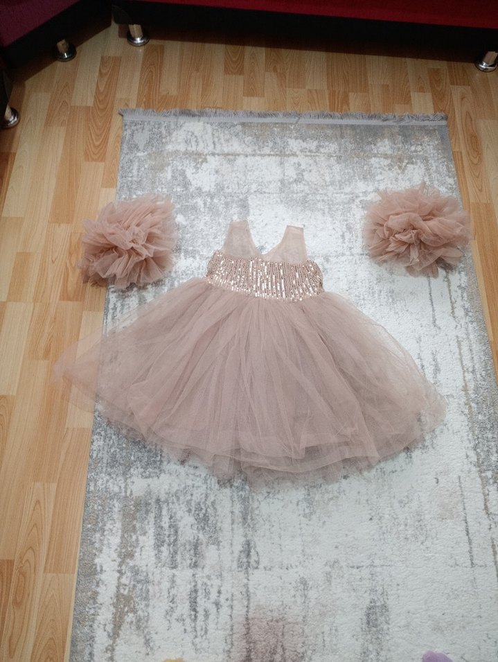 Kız Çocuk pudra pembesi Fırfırlı Abiye Elbise