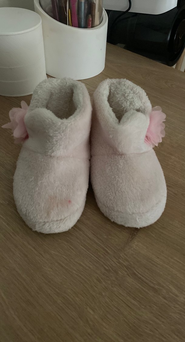 Kız çocukları için pastel pudra pembesi renkte, yumuşak ve sıcak kürk detaylı, sade ve desensiz ev terliği. Rahat kullanım için idealdir.
