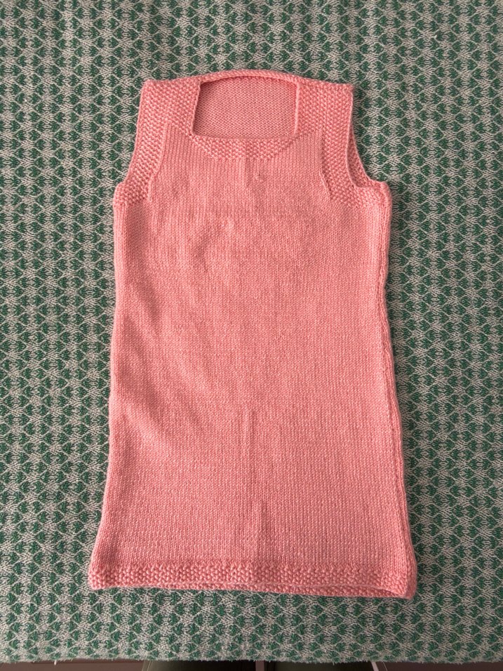 Kız çocukları için pastel pudra renginde, düz ve bohem tarzda, ince triko kumaştan, bisiklet yaka ve kolsuz, vücuda oturan süveter.