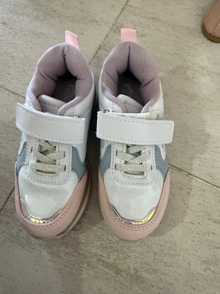 Kız çocukları için pastel pudra renkli unicorn desenli, cırt cırtlı ve kauçuk tabanlı rahat spor ayakkabılar. Hiçbir kusuru yok tertemiz