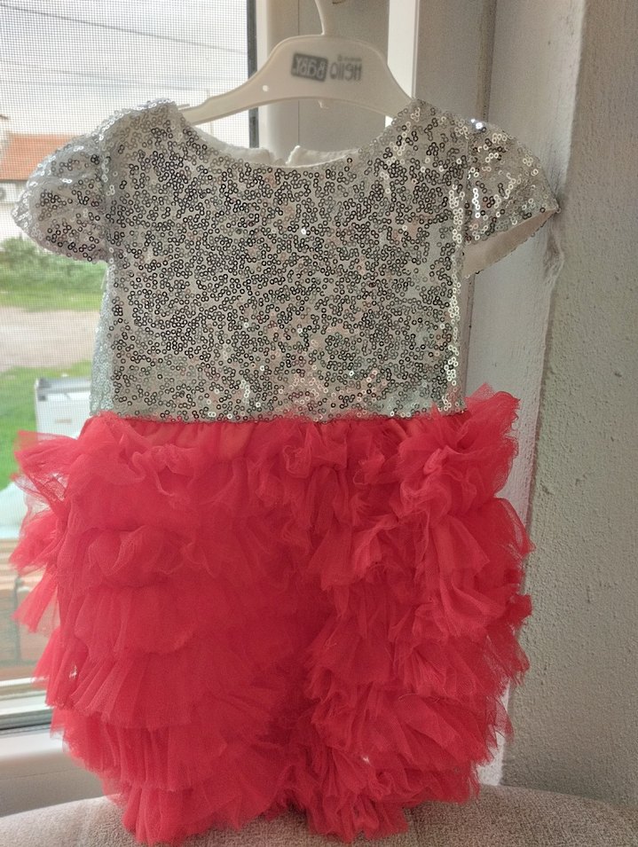 Kız çocuk elbisesi, pul işlemeli kısa kollu üst ve canlı kırmızı fırfırlı etekten oluşur, şık ve bohem tarz sunar. ✨ 10 kg a kadar uyum sağlar