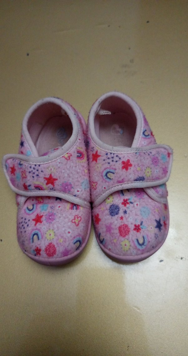 Kız çocukları için yumuşak kürk kumaştan, renkli batik desenli ve cırt cırtlı sıcak terlikler.