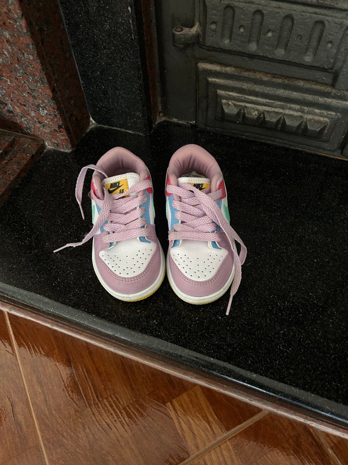 Kız çocukları için pastel tonlarda çok renkli bağcıklı ve cırt cırtlı, lastik tabanlı spor ayakkabılar. Bir kere giyildi