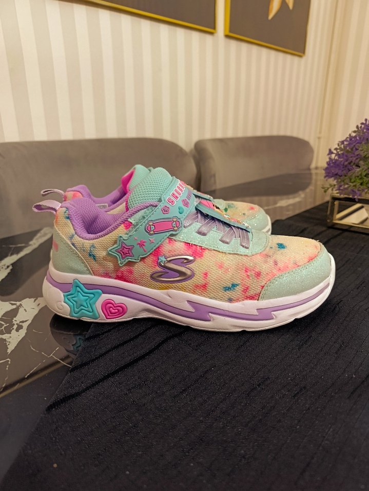 Kız çocukları için pastel tonlarda, bağcıksız ve cırt cırtlı sneaker. Renkli tasarımı ve kauçuk tabanı ile rahat ve şık. 35 numara Genel olarak tertemizdir