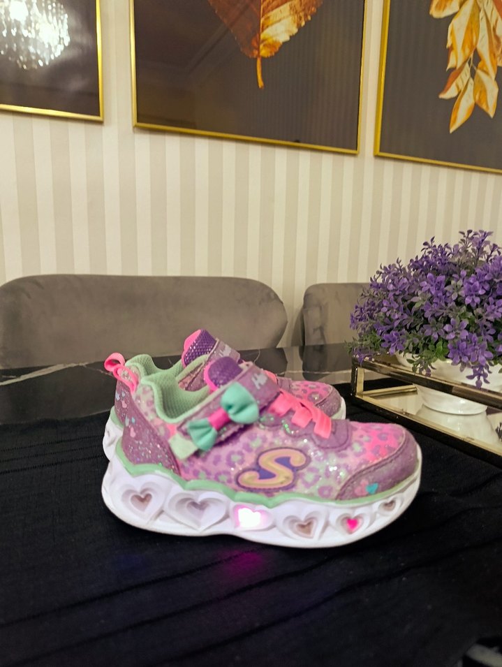 Kız çocukları için renkli bağcıksız spor ayakkabılar, bağcık yerine cırt cırtlı kapama ve kalpli ışıklı kauçuk tabanla sokak modasına uygun.24 numara Tekin'in ışığı yanıyor diğeri yanmıyor