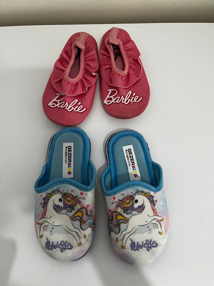 Kız Çocuk Renkli Barbie ve Unicorn Terlikler